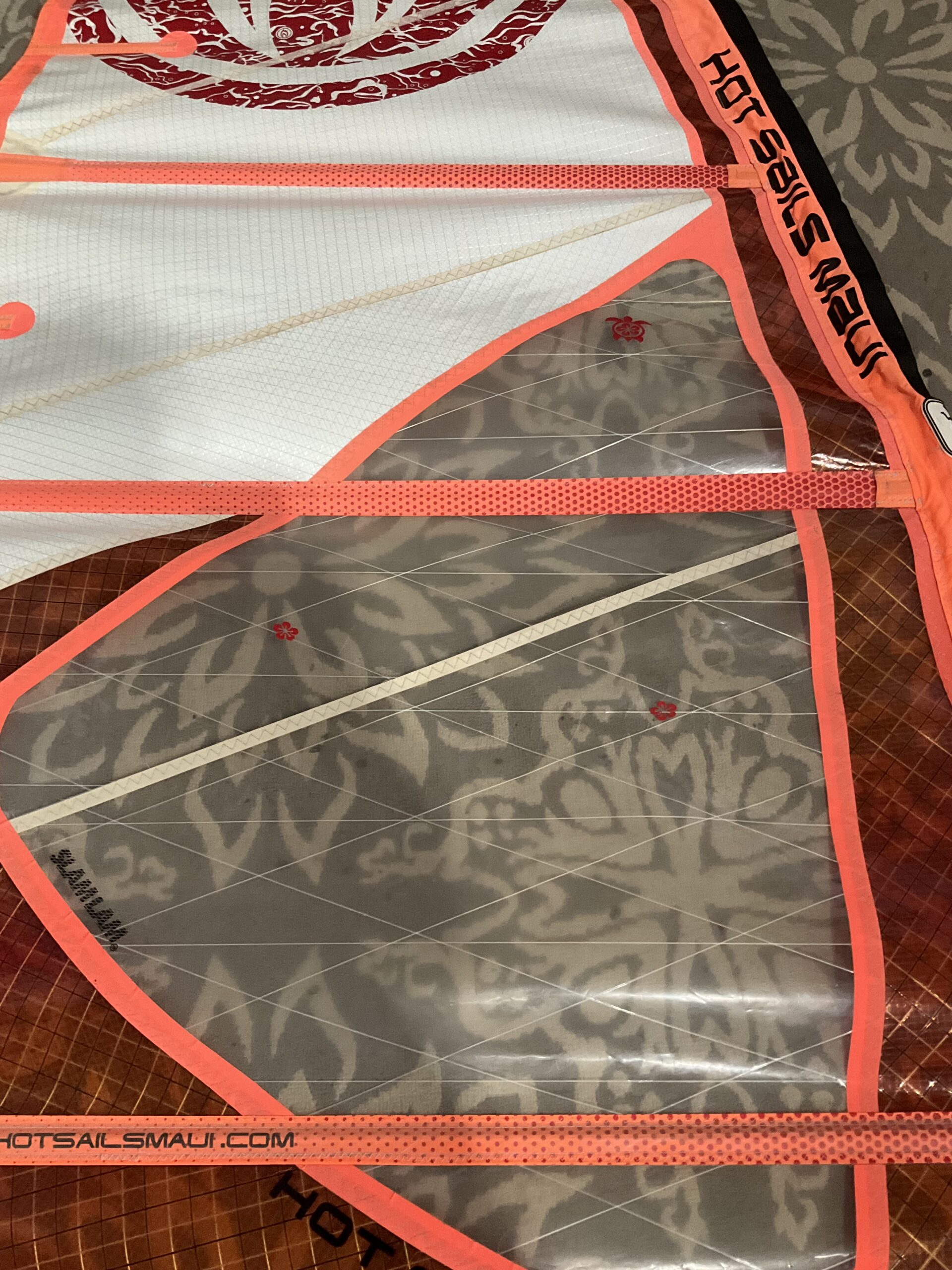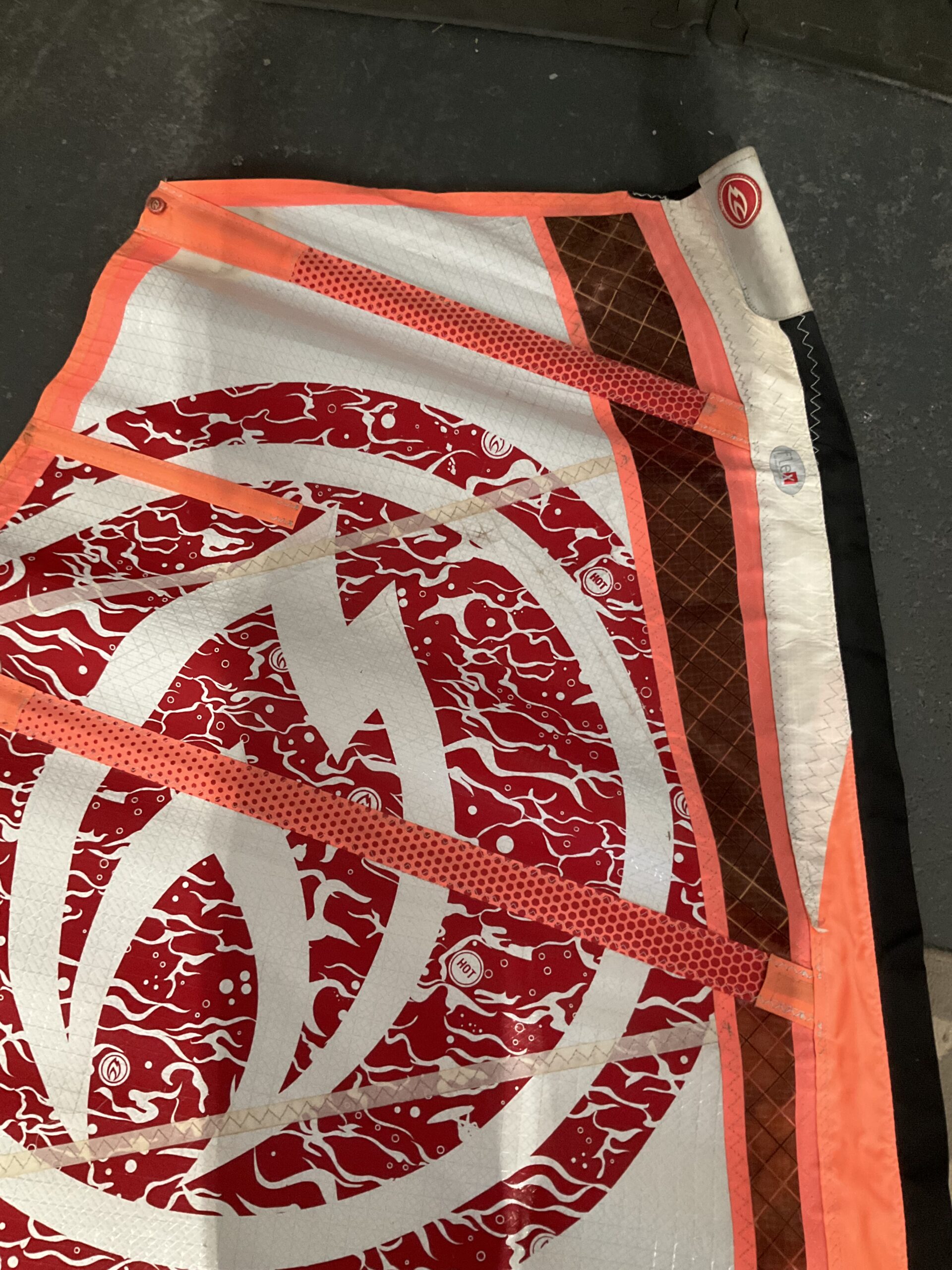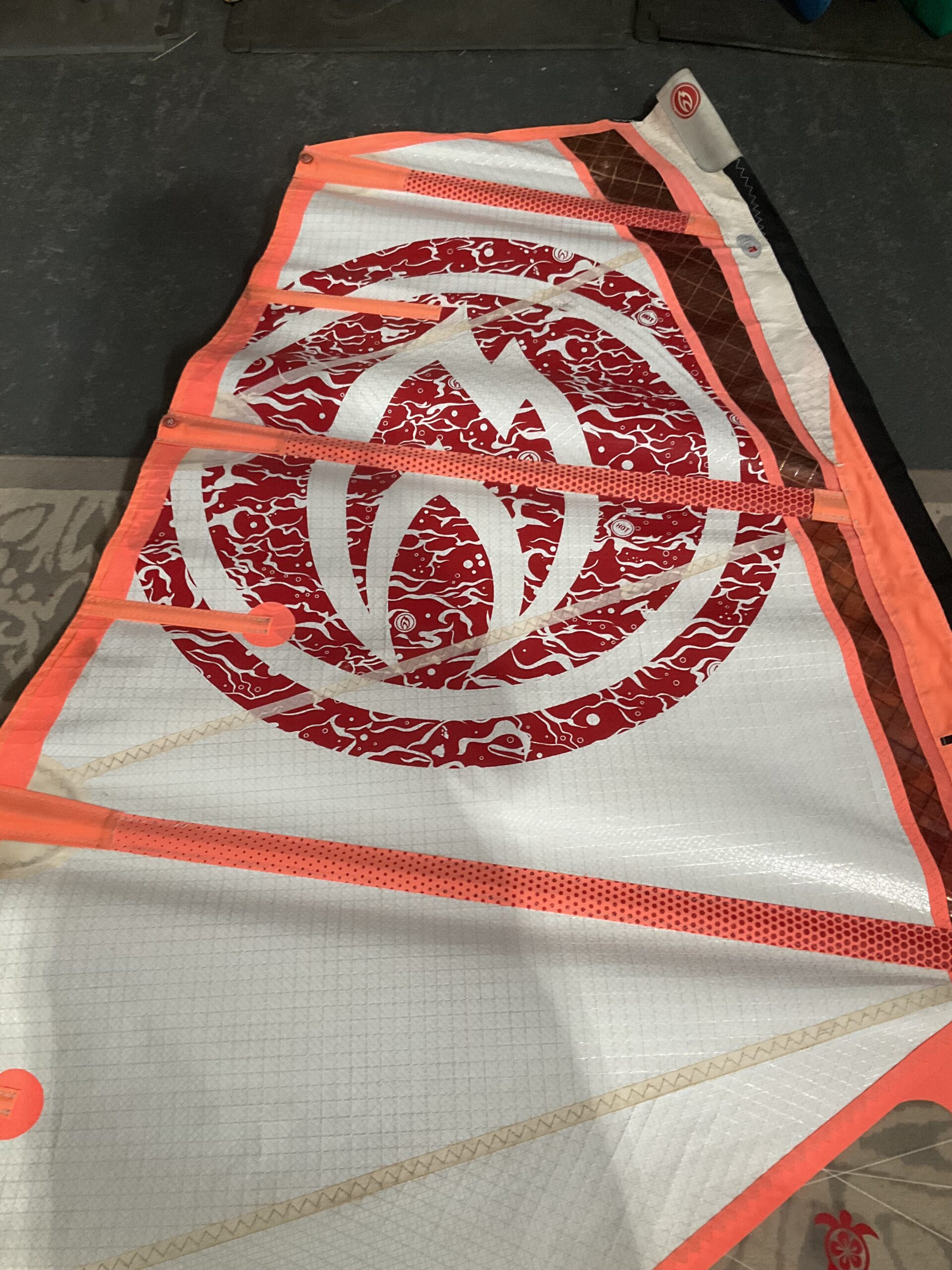 Most notable I the luff panel has some delamiation which does not change the way it sails, but it will not be as strong as was when made. (This is the main reason for the low price)
