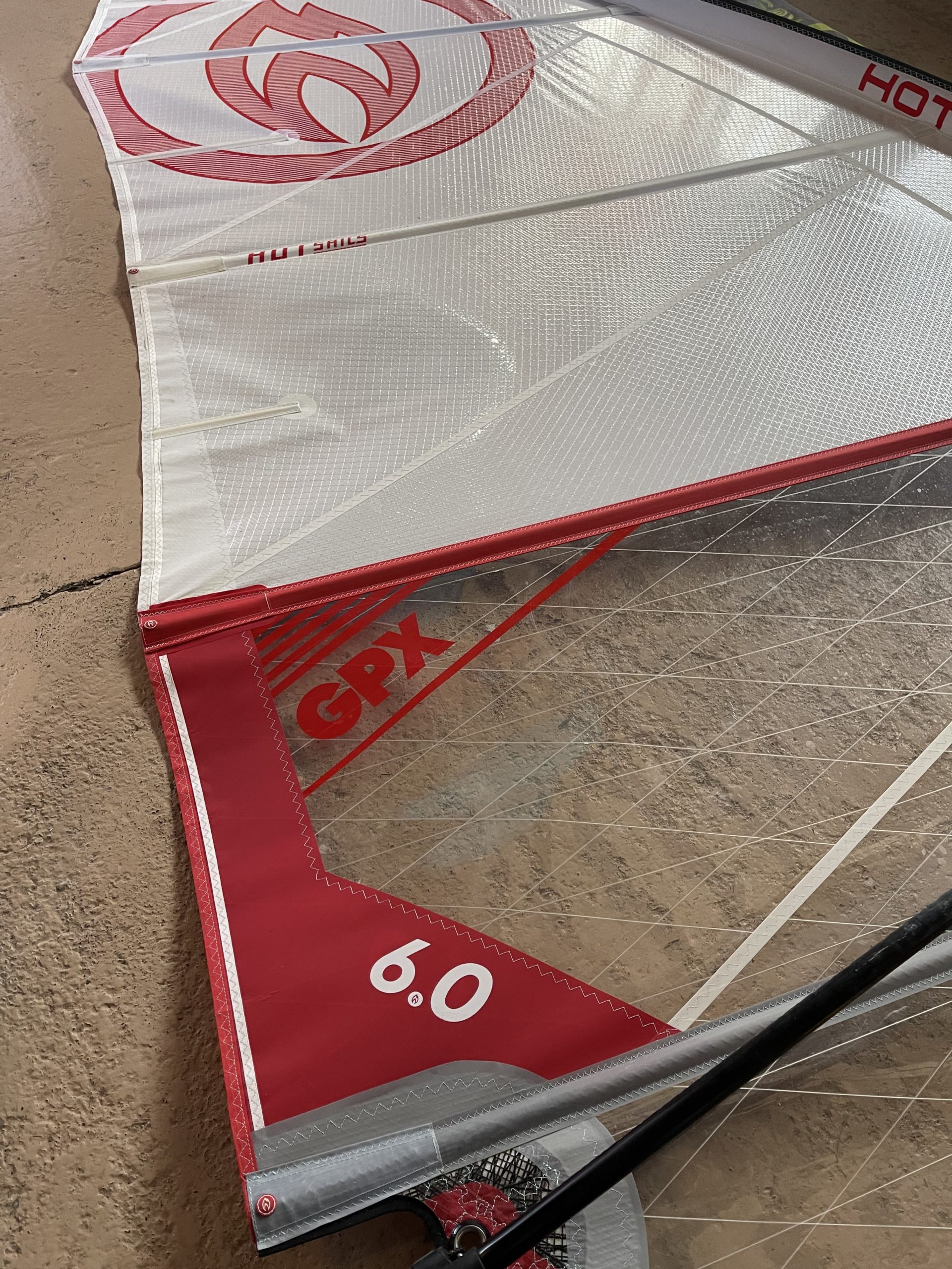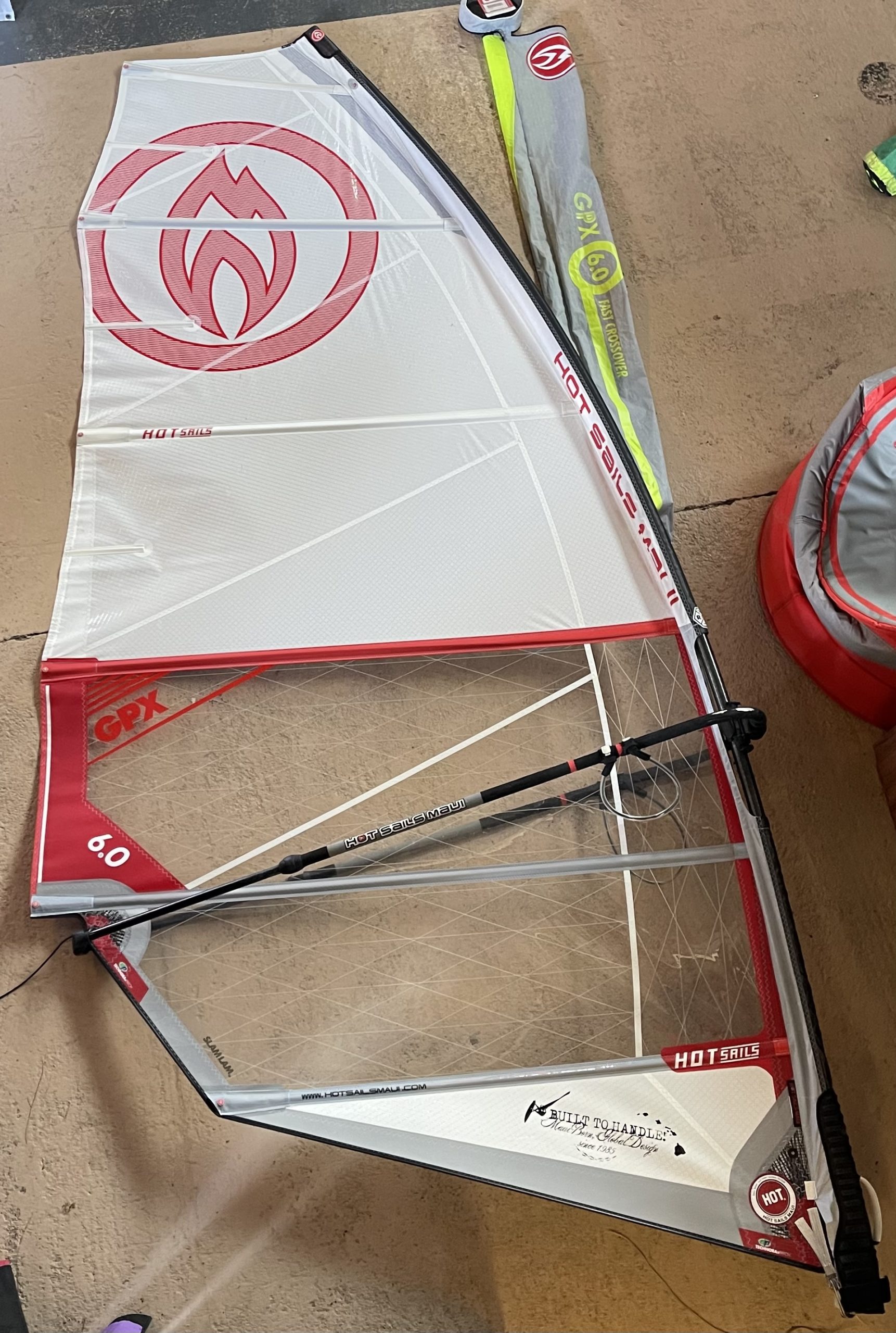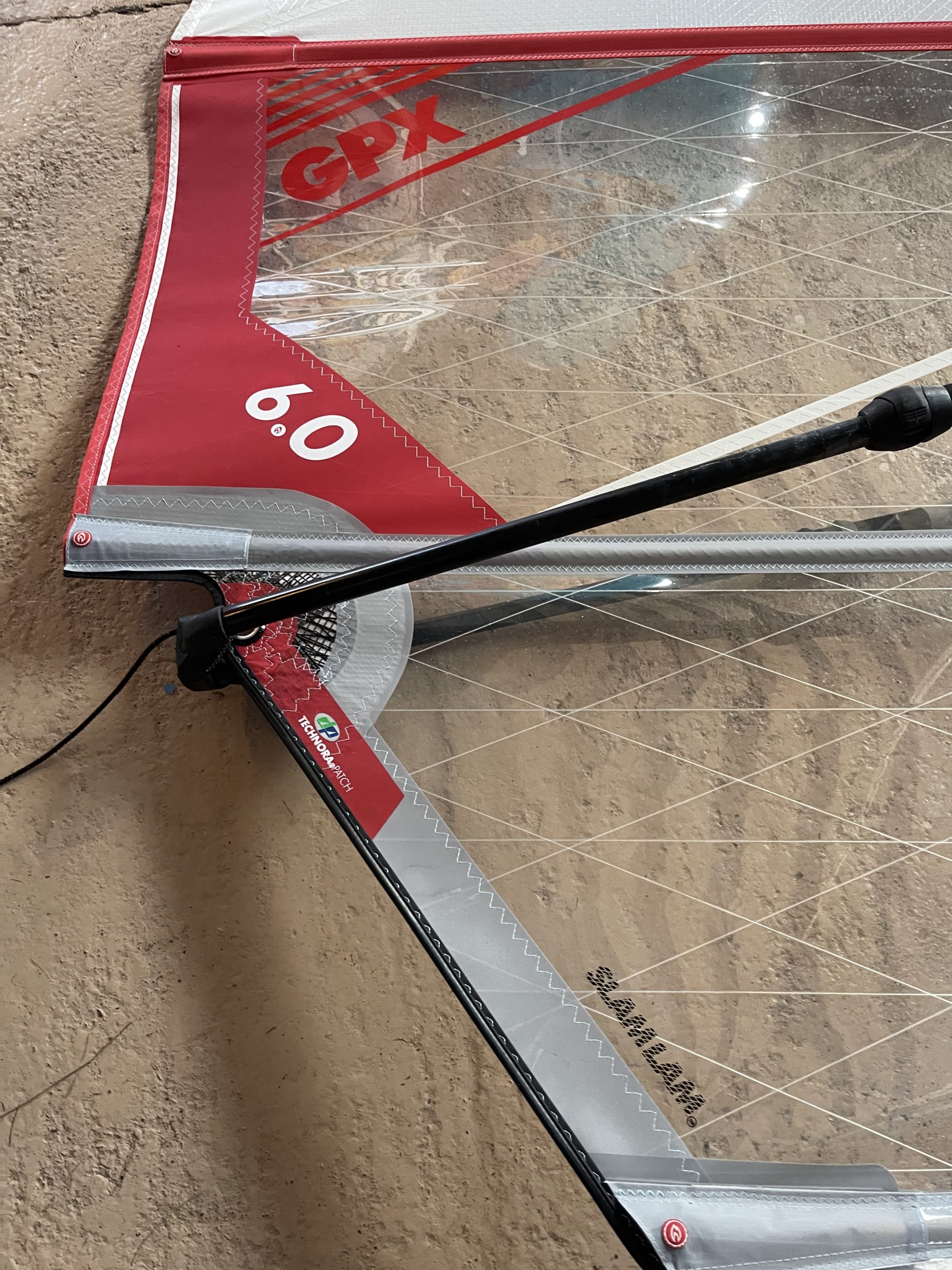 Used only 2 times, this 6.0m GPX no cam slalom sail is like new. Rigs on 430 mast.