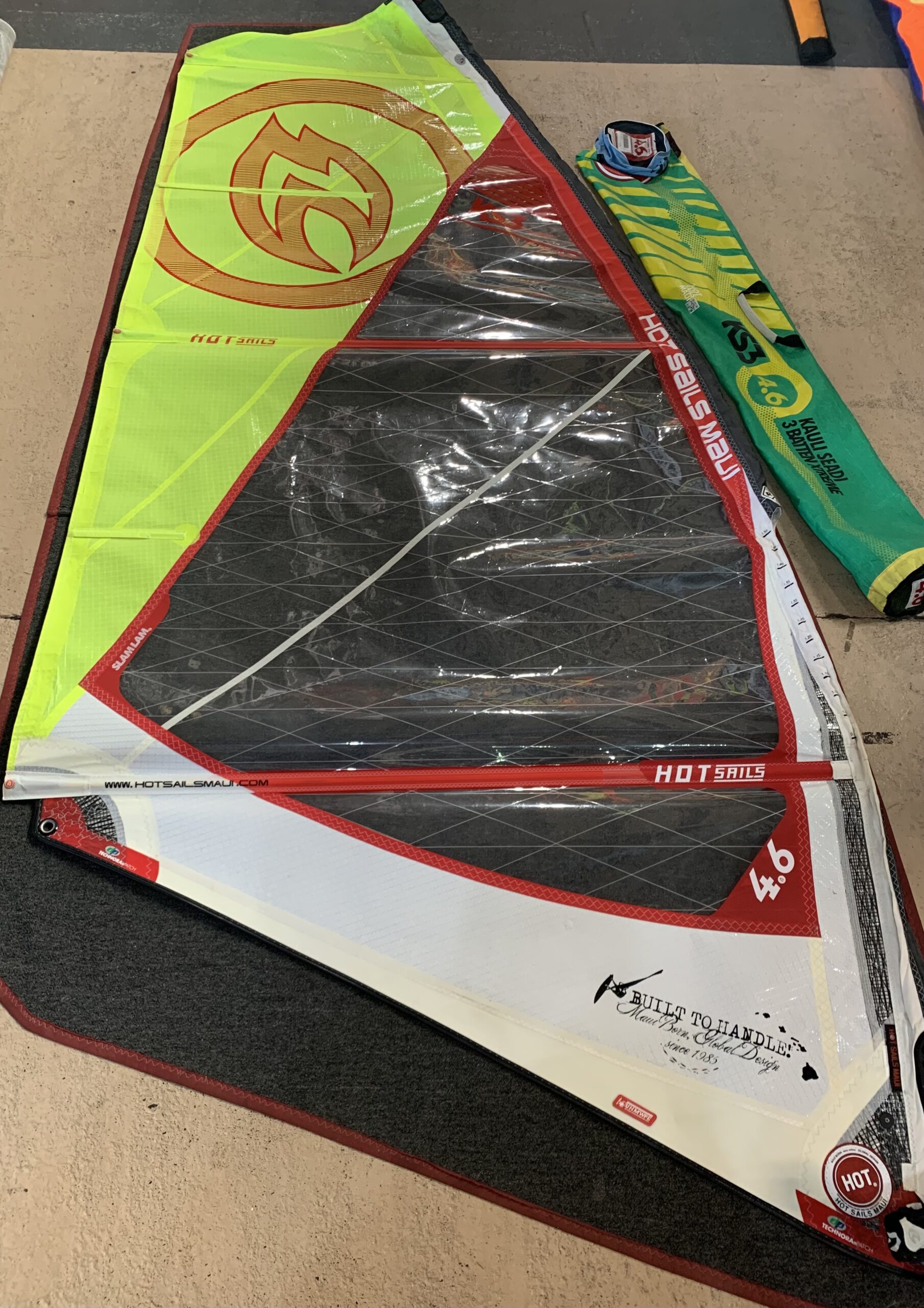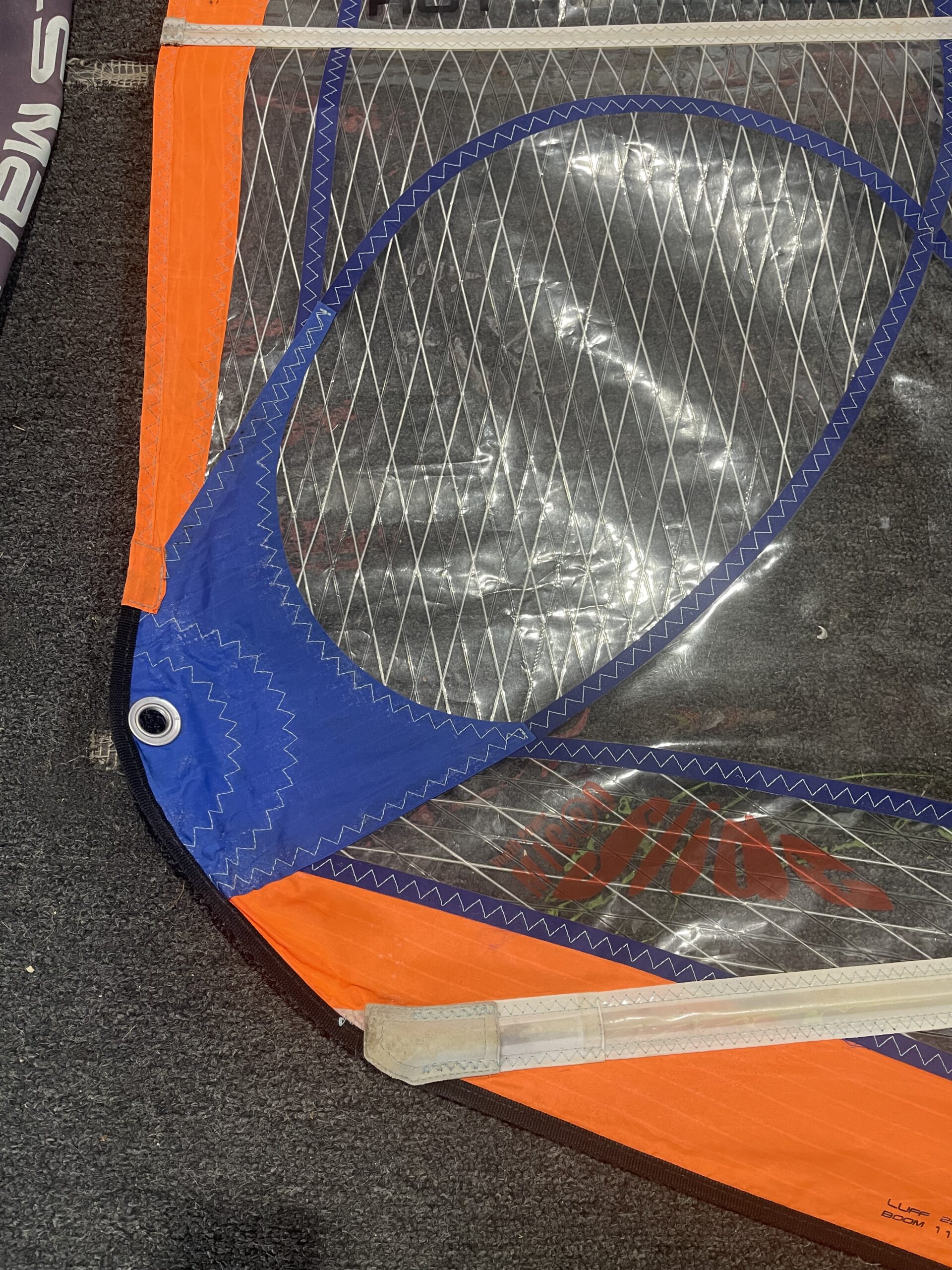 The MicroSlide is one of the best built and well thought out kid’s sails in the world. The construction is second to none, and the durability of the materials is legendary. All the edges of woven cloths are folded and hemmed under, all seams are glued and triple stitched. The sails are light, but able to spend season after season of punishment in the sun and in the shore break with little damage. So take your kids and punish these sails all you want, you will not be disappointed.