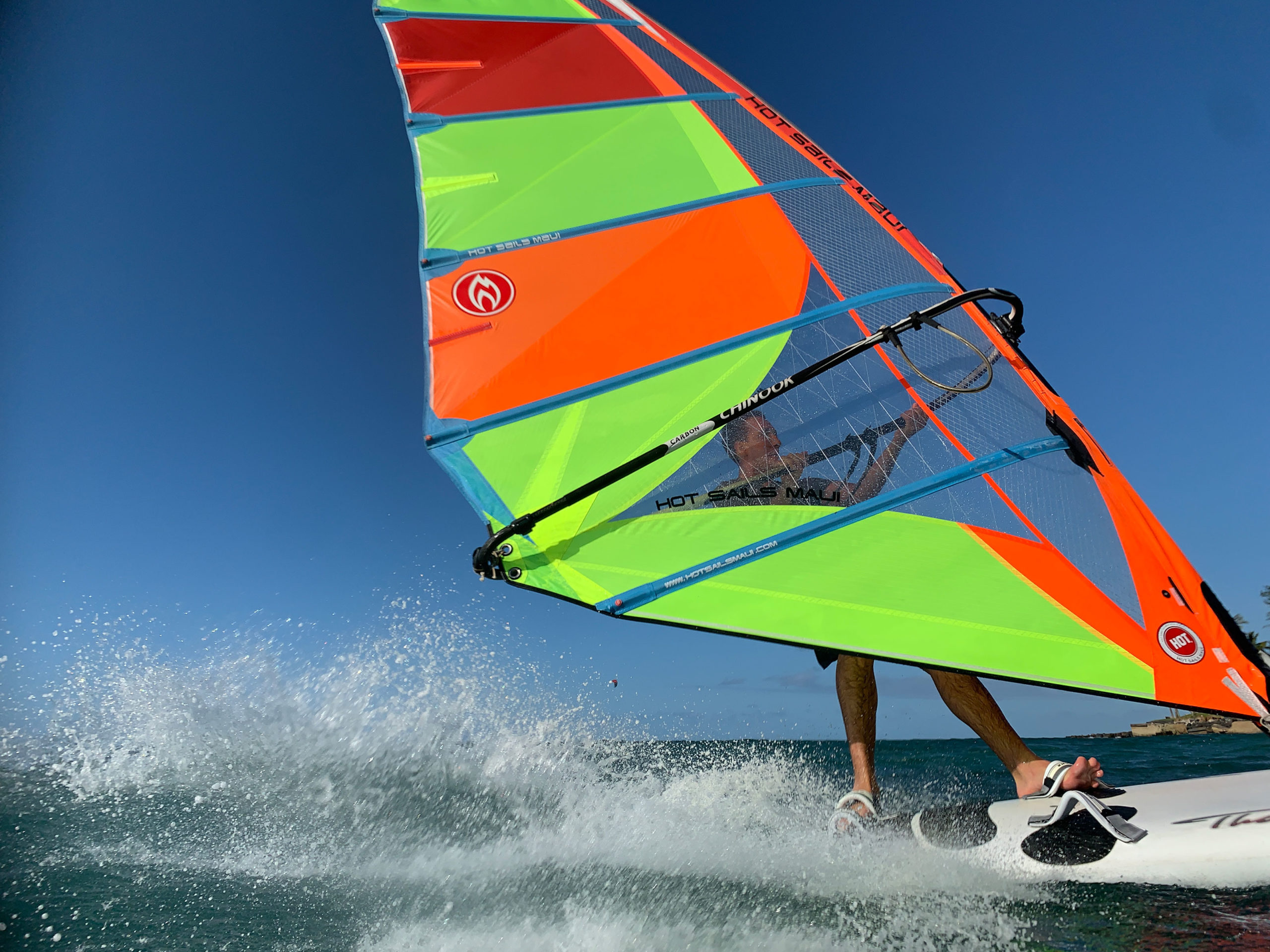 With a super smooth rotating single cam below the boom the larger sizes stay fully shaped at all times. Full power while jibing or water starting and delivering a stable pull between gusts and lulls.